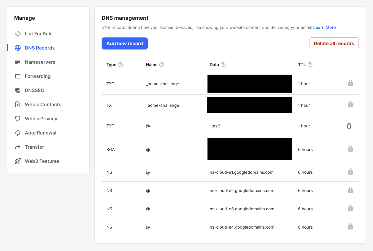 • Important: A subdomain with a CNAME cannot have any other DNS records set at the same time.
