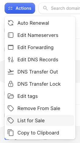 Unstoppable Domains has a built-in marketplace where you can list your domains for sale. You can list domains one at a time or in bulk, and manage everything directly from your account.