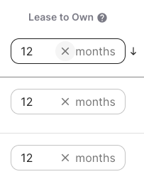 To disable Lease to Own simply press the X next to the month period. You can do this in bulk by clicking the first X at the top.
