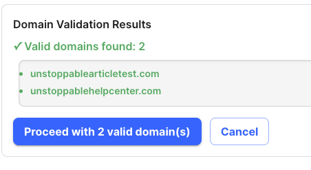 Note: The current limit on listing via CSV is 250 domains but we plan to increase that in the future.