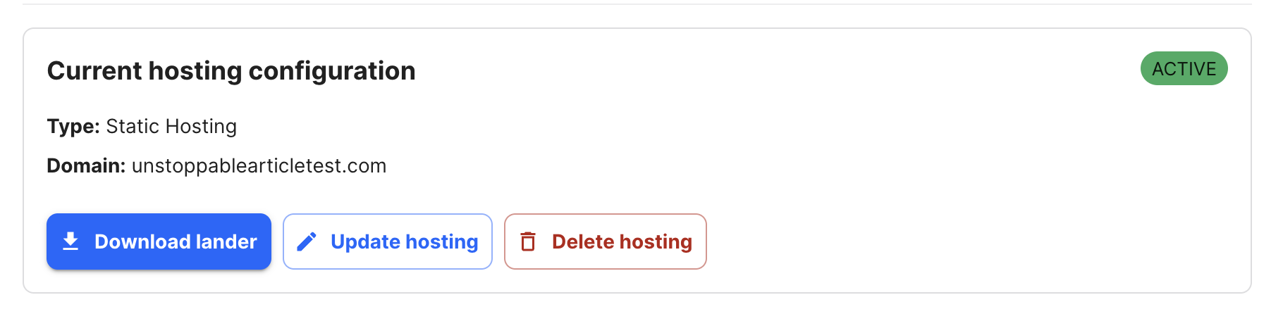 The landing page will generate the content and propagate out the DNS changes. Once that has finished, you will see Active.